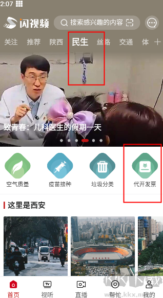 1、首先,打开软件,在首页点击民生,然后点击“代开发票”按键;