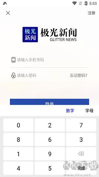 1、打开软件,输入手机号、密码进行登录,没有帐号的用户点击右上角的注册进行帐号申请;