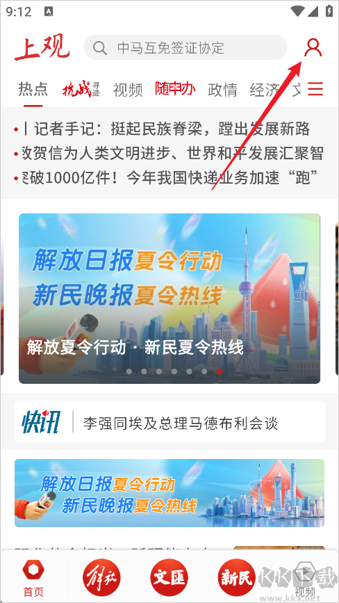 1、进入上观新闻App后点击右上角的头像
