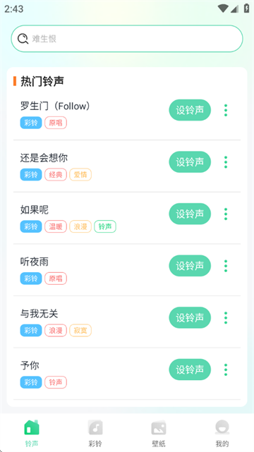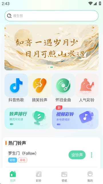 铃声大全:精选各类铃声,涵盖短信铃声、闹钟铃声、提示音等,让您的生活充满音乐色彩。