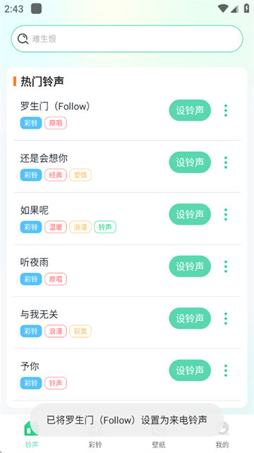 一键设置你喜欢的铃声