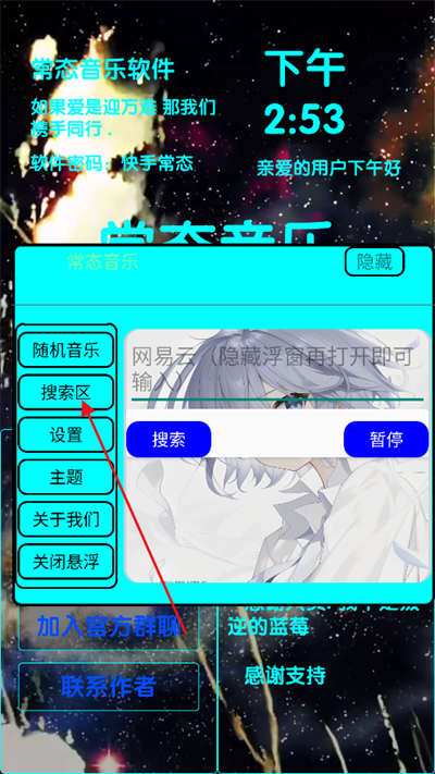 5、想听什么歌曲,可以直接在搜索区输入歌名进行搜索。