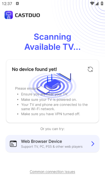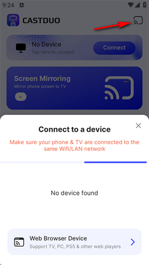 CastDuo界面很清爽的一款专业好用且免费的手机投屏到电视上的工具。