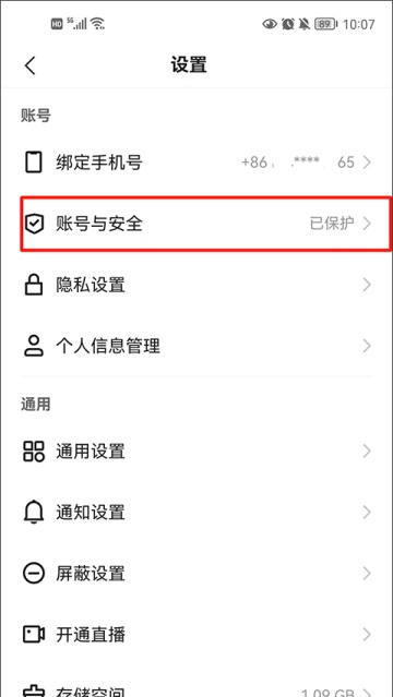 2、找到账号与安全点击进入;