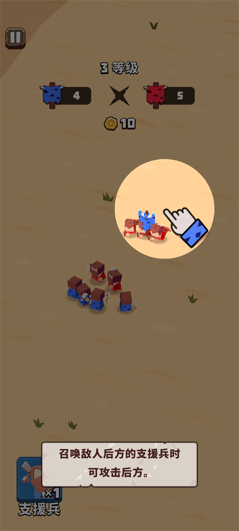 4、关卡左下角还有一个支援兵,你可以将支援兵召唤到敌人后方来进行攻击;