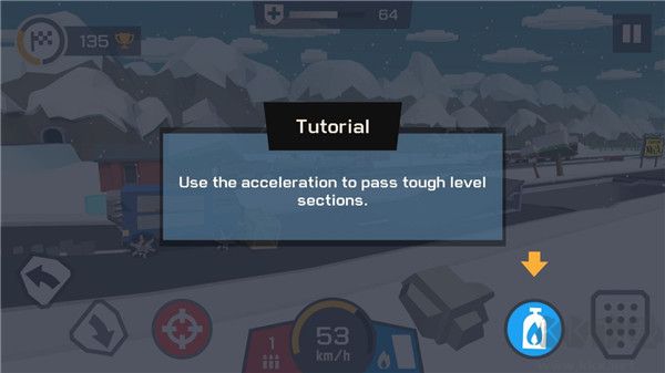 2、经典的好上手的操作方式,指尖点击即可控制汽车前行、发射子弹、飞跃等;