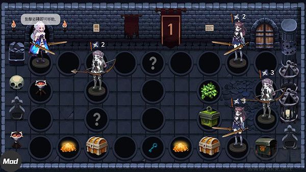4、进入副本界面,点击圆形瓷砖可以移动角色,