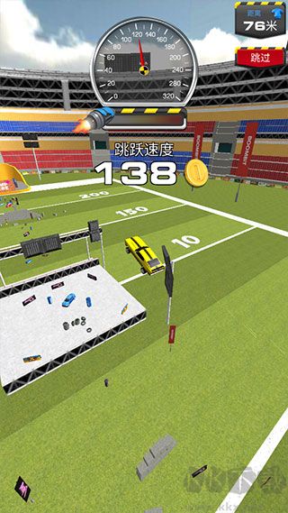 5、控制赛车在斜坡赛道上漂移、跳跃,利用地形冲刺最远距离。