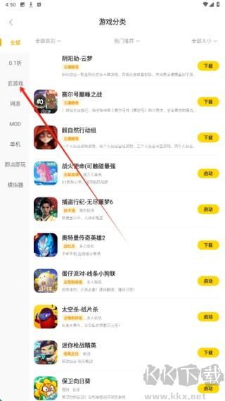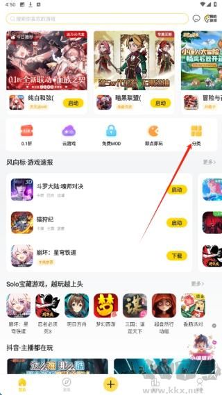 1、在游戏应用主界面,点击右侧分类按钮,进入游戏分类筛选页面,可按类型查找心仪游戏资源。