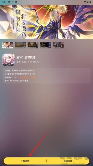 3、找到崩坏:星穹铁道游戏详情页,查看介绍后,点击底部黄色“下载游戏”按钮,开始获取该游戏。