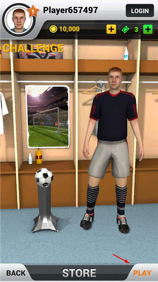 3、球员成长与自定义系统,通过比赛获得经验提升属性,并可解锁多种庆祝动作、球衣与足球皮肤,打造属于你的明星射手形象;