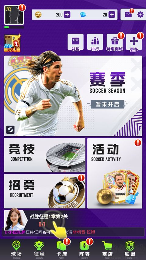 可随时挑战,能获得金币、升级币及球队经验等奖励,关卡难度越高奖励越丰富;