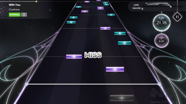 1、游戏采用经典的五键下落式操作,音符沿判定线精准落下,玩家需在旋律节奏中完成点击、长按等操作,采音设计爽快且谱面兼具双指与多指的可玩性;