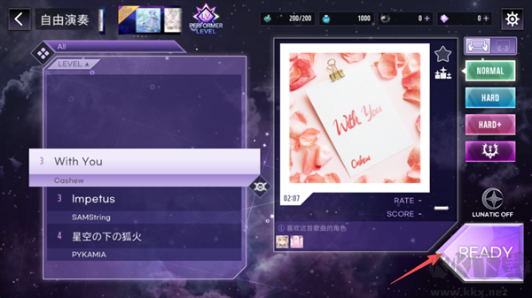 2、选则需要演奏的歌曲,随后点击屏幕右下角的“READY”。