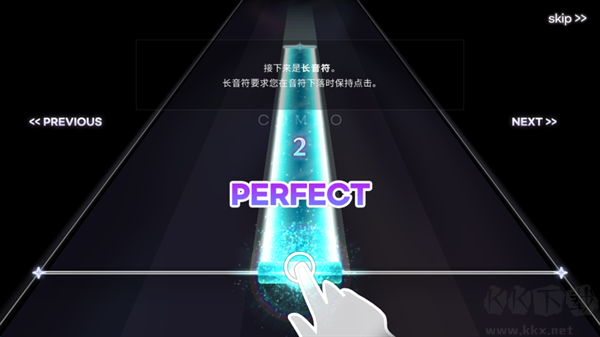 6、不断的点击下落的音符块,直到音乐结束。