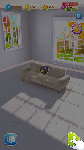 6、接着点击沙发上的锤子图标来翻新沙发。