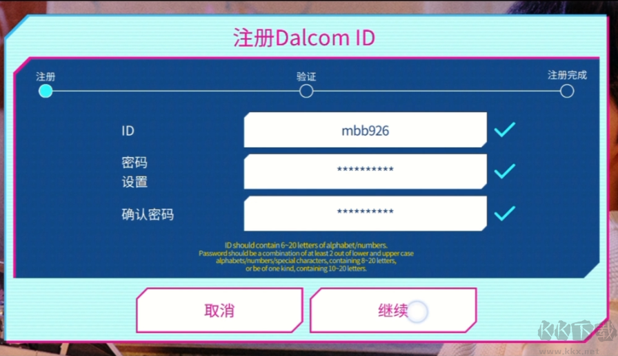 4、按提示注册 ID,并设置登录密码,完成基础账号创建;