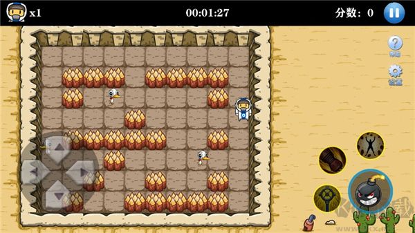2、左侧是控制角色移动的摇杆,右侧是炸弹按键;