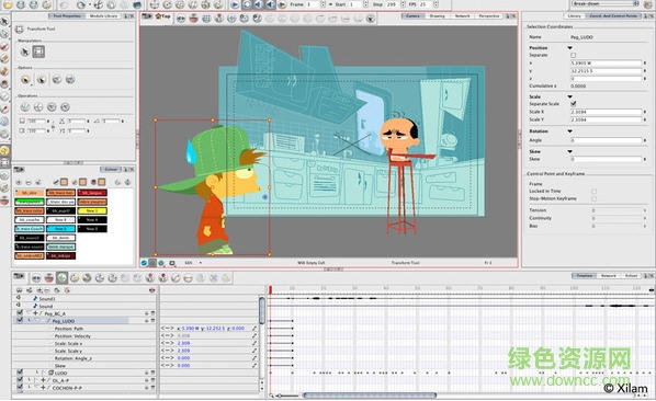 Toon Boom Animate汇集了为市场定制的最先进的动画功能.所有的元素都嵌在一个灵活的环境中:矢量,位图,元件,定位钉,照相机,变形,反向运动学和先进的口形同步等等。