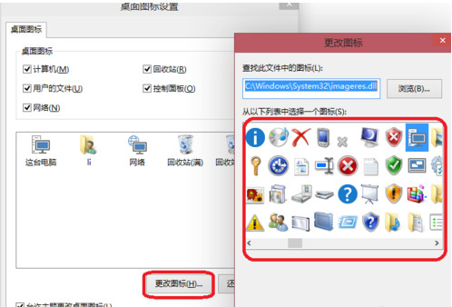 3、选择更改桌面图标,也可以自定义选择修改图标。