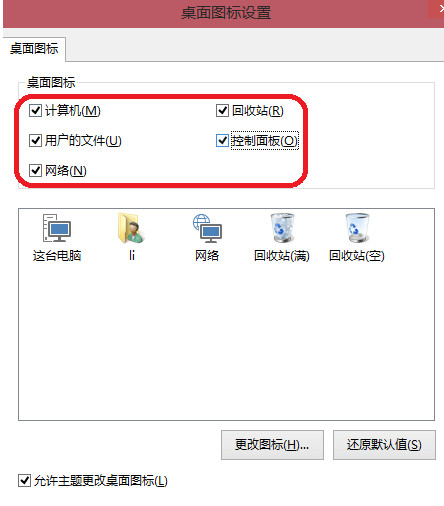 4、把计算机、用户的文件、网络、控制面板勾上