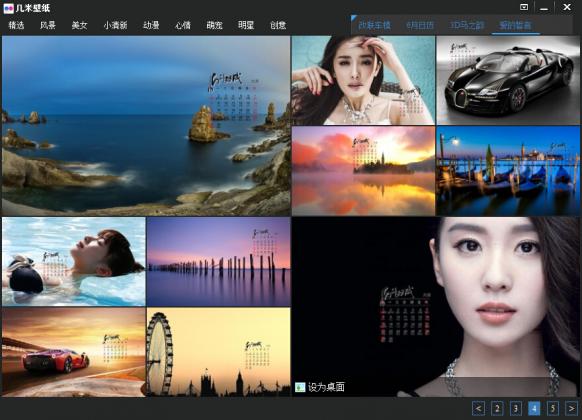 解压后安装软件,选择自己喜欢的壁纸,点击”为桌面壁纸“的图标即可