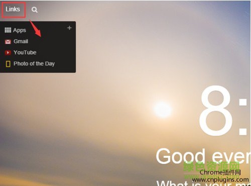 点击【links】后,可以看到google apps, youtube, gmail和国家地理杂志的每天一图!而点击【放大镜】,则可以快速进行google搜索!