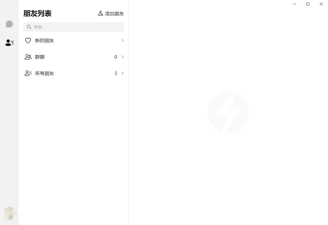 2、聊天界面在最左侧,可以切换聊天界面以及好友列表界面;