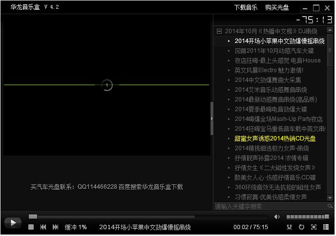 华龙音乐盒是中国第一款dj舞曲在线播放的音乐盒,真正做到无需安装,一点击可播放。直接下载华龙音乐盒到桌面上,打开就可以用,前两曲是广告,从3曲开始听.