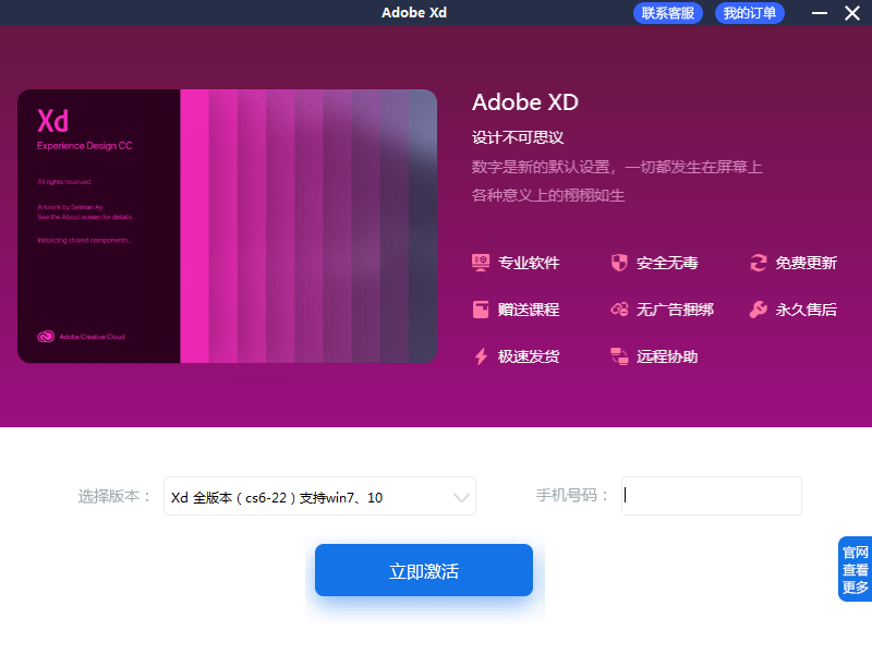 Adobe XD官方版(全称为 Adobe Experience Design CC) 是专为 UX、UI、原型、交互而生的矢量化图形设计软件,它跨平台支持 Win10 与 macOS,可快速设计和建立手机 App 或网站原型,包含线框稿、视觉设计、互动设计、用户体验设计、原型制作、预览和共享等功能。