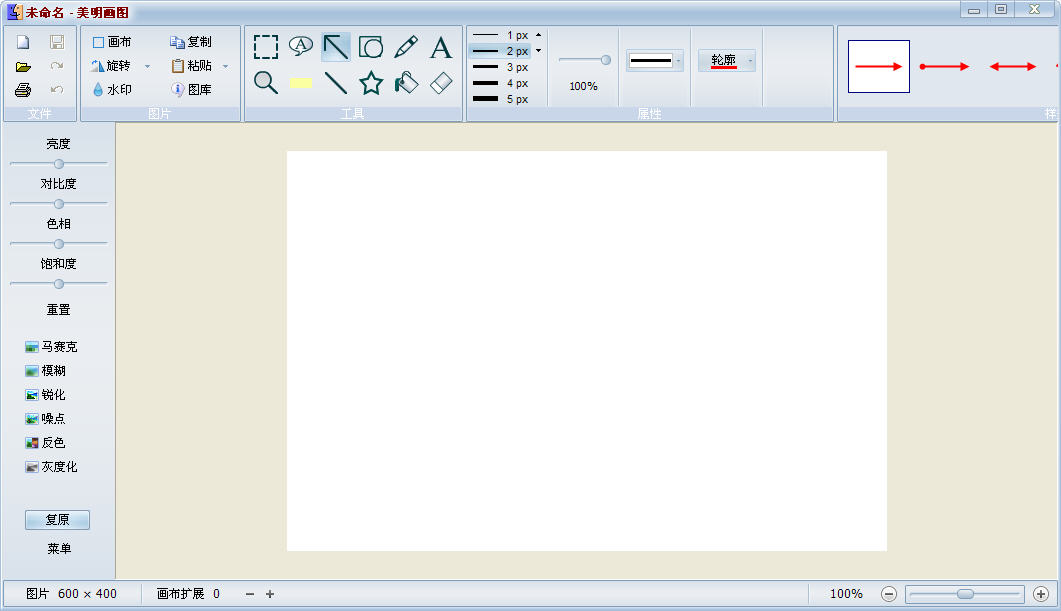 美明画图是一款功能强大、操作简单方便的图片编辑软件,支持各种图形样式(如箭头、矩形、多边形、文本等),支持各种特效处理(如高亮、马赛克、模糊、亮度、色相、饱和度等),同时支持水印、图库管理、裁切、旋转等各种功能。