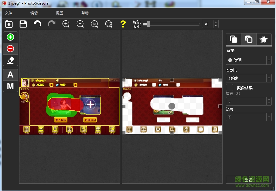你需要抠图的部分用绿色表示,不需要的用红色的表示。涂抹完成后,软件就会自动识别你想要截图的地方。