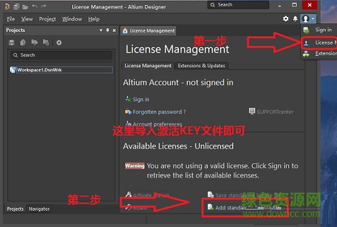 8.选择左上角的License Management 在点击Add standalone license file 导入KEY激活秘钥模板