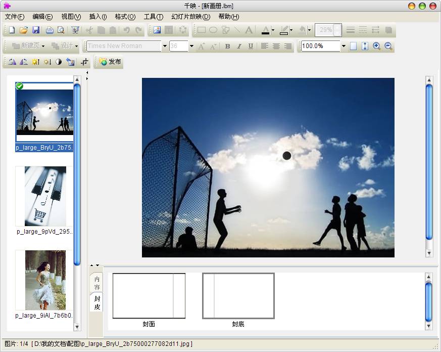 千映是以“册”为单位来管理自己的数码照片、作品的一款简单易用的桌面画册、旅游纪念册等排版软件,能够对照片进行分类、添加文字介绍,根据图片不同的形状进行排列,支持多种自定义的功能,能够对字体的颜色、大小进行选择,制作出独具个性桌面相册。让用户自己创建画册,图文并茂,每一个画册由多个画页组成。用户只要用鼠标拖拽,“千映”就会按照用户的意愿把照片安排到每一个画页上。
