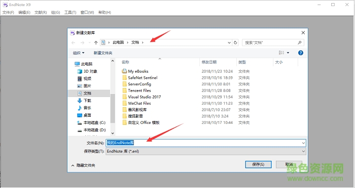 1.打开EndNote x9。点击文件-新建,在弹出的对话框中选择一个地址,修改文件名,新建文献库。