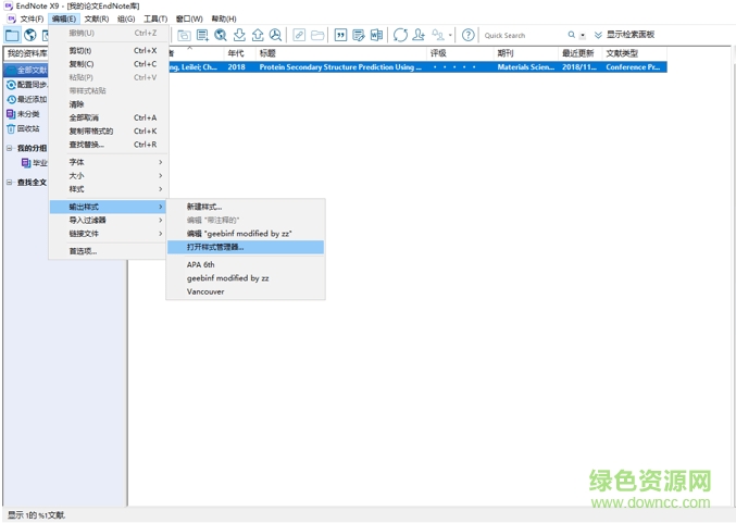 在 EndNote 界面上依次单击“编辑”(Edit)——““输出样式”(Output Styles)——“geebinfmodified by zz”“geebinfmodified by zz”即可。