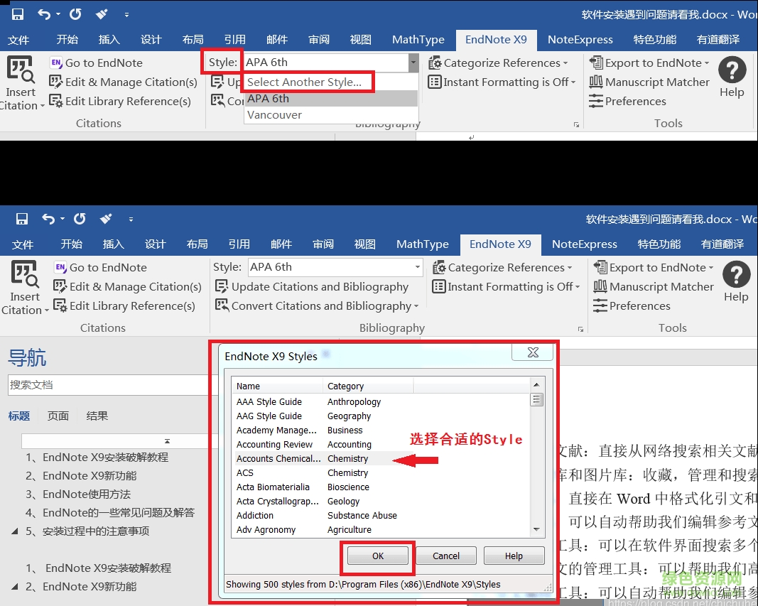 在Word中点开EndNote X9工具栏,选择Style—Select Another Style...,选择合适的引用文献类型即可!Select Another Style...,选择合适的引用文献类型即可!