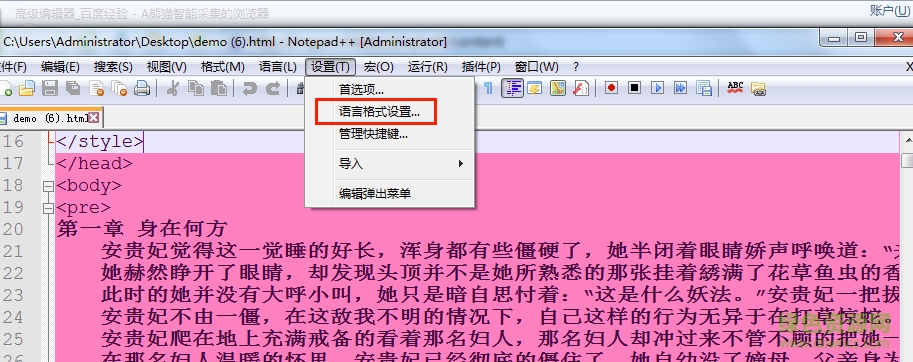 你可以在Notepad++里设置属于你的编辑器风格,界面主题还是相当丰富的。点击菜单的设置