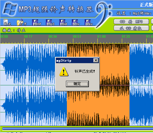MP3 To Ringtone Gold 故名思议,就是MP3转换到手机格式的软件,即是一款手机铃音转换软件。能够将常见的音频格式MP3转换为手机铃音格式(.mmf,.amr,.mp3,.wav, .mid),并发送到手机。还支持一次提取多张CD音频。还能为你的MP3手机进行MP3文件大小转换,而且支持提取MP3文件片断。