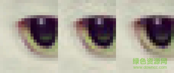 上图是 20x24 像素的一张猫眼的放大细节图。左边是未压缩的原图,中间是 libjpeg,右边是 Guetzli 。