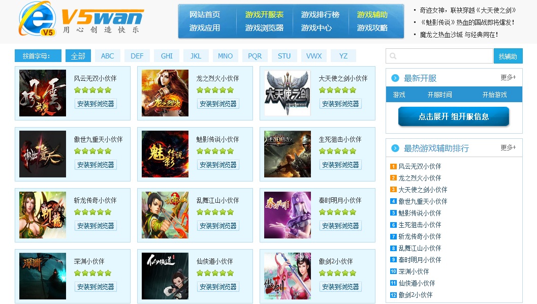 V5游戏浏览器是一款真正为网页游戏而设计的专用加速浏览器,完全绿色免费,安全无毒,内置上万种网页游戏,让你找游戏不用愁。全新首创的加速功能带给您极速的游戏体验,配合隐藏挂机、自动喊话、答题器、合成查询等多种游戏辅助和应用,令您可以随意控制游戏进度,尽情的享受游戏中的快感!多核心运作,根据使用情况自动切换,玩游戏、看电影、看网页,速度都是no.1!全面分析时下热门游戏,以玩家的角度,为玩家推荐最好玩的游戏,再也不担心零碎的时间无法打发。