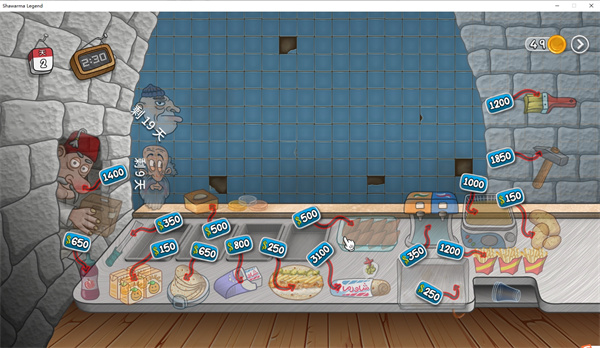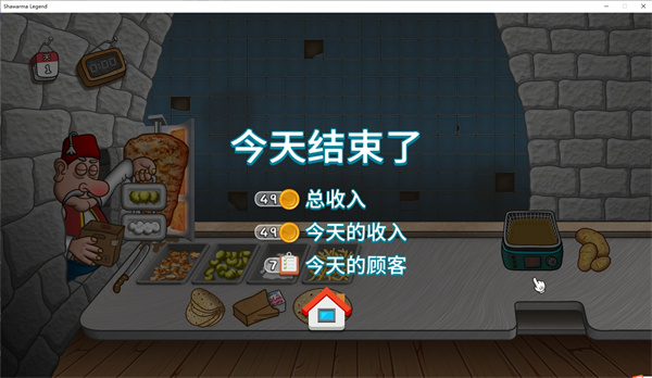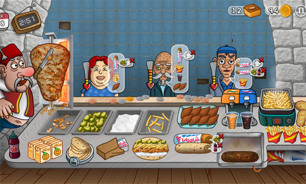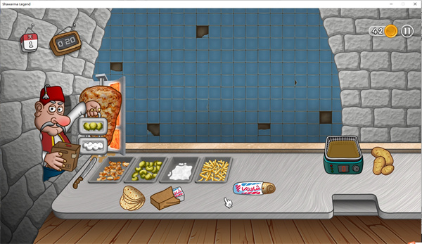 沙威玛传奇电脑版让我们体验到经营餐厅的乐趣,我们将经营一个制作沙威玛的小吃摊,拥有不同的制作工序,需要按照制作步骤才能完成制作,沙威玛会有多种配料,从左边的老头那里可以获得黄瓜和调料,右边则可以获得薯条,然后我们使用饼还有配料就可以完成制作,交给顾客就可以赚取金币,整个游戏过程是比较忙碌的,因为顾客会络绎不绝的前来,我们需要满足顾客的需求,不然顾客就会生气走人,所以我们需要快速的完成制作,保证口碑。