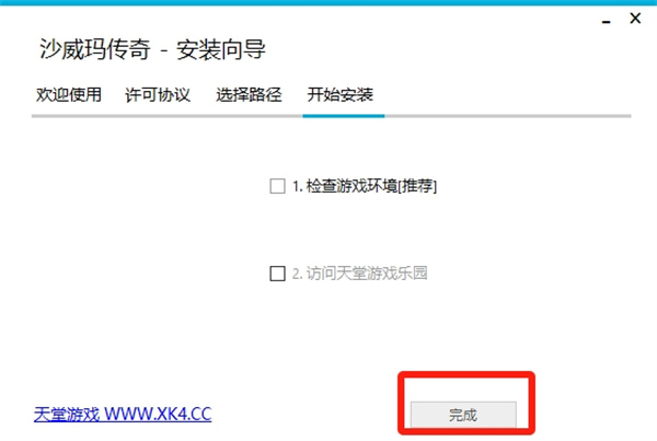 5、最后我们就可以完成安装,点击取消勾选【检查游戏环境】、【访问天堂游戏乐园】,然后点击【完成】即可。