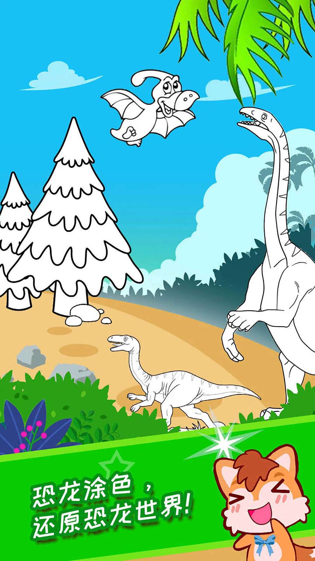 你家宝宝喜欢可爱的恐龙吗?《宝宝恐龙涂色本》可以让你的孩子穿越到史前世界中,和史前恐龙们交朋友。为各种恐龙涂上自己喜欢的颜色吧!