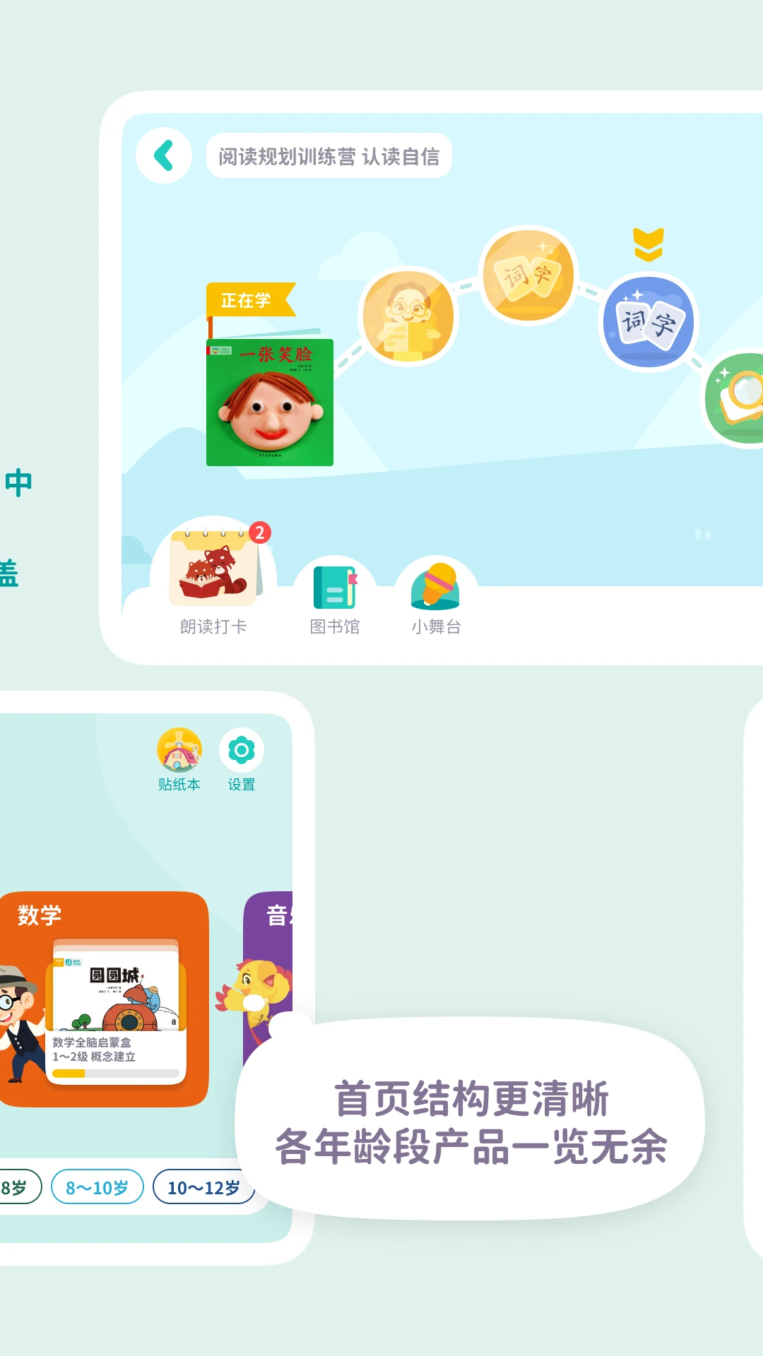 根据阅读时长、绘本学习、成果展示3大板块,奖励阅读币,帮助孩子养成阅读习惯。