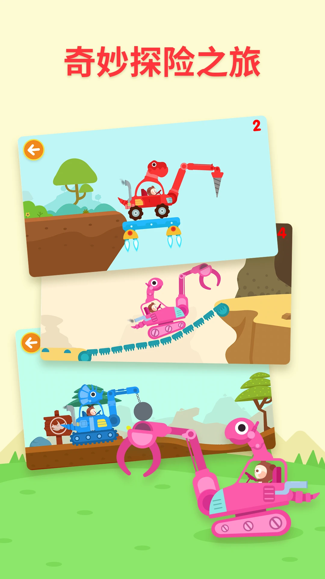 【精心制作】丰富关卡,还有三款为小朋友精心打造的恐龙机械车!都各具特色呢