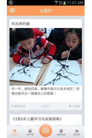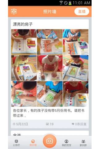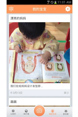 提供拍照、短视频功能,老师拍摄的孩子作品、今日伙食、一起做游戏、上课了、爱劳动等,不再需要繁琐的U盘拷贝,拍摄完毕直接送达您的手机,随时了解孩子的状况,更加放心。