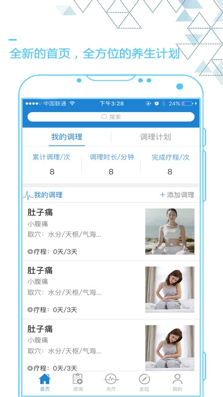 02. 可以自助添加调理方案进行灸疗管理,轻松使用艾灸来进行健康管理。