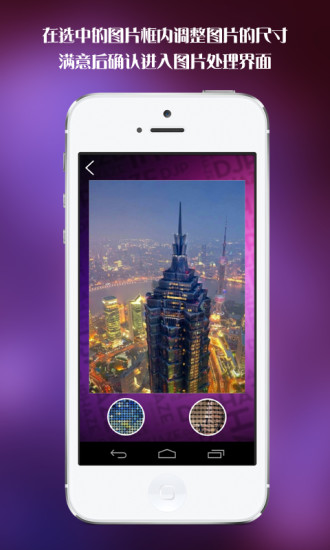 2、在选中的图片框内调整图片的尺寸,满意后确认进入图片处理界面。
