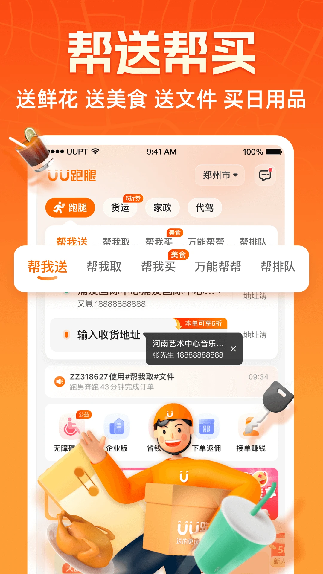 一呼秒应,UU跑腿为您提供高效便捷的同城即时生活服务,百万UU跑男实名认证,全城急帮平均37分钟完成。